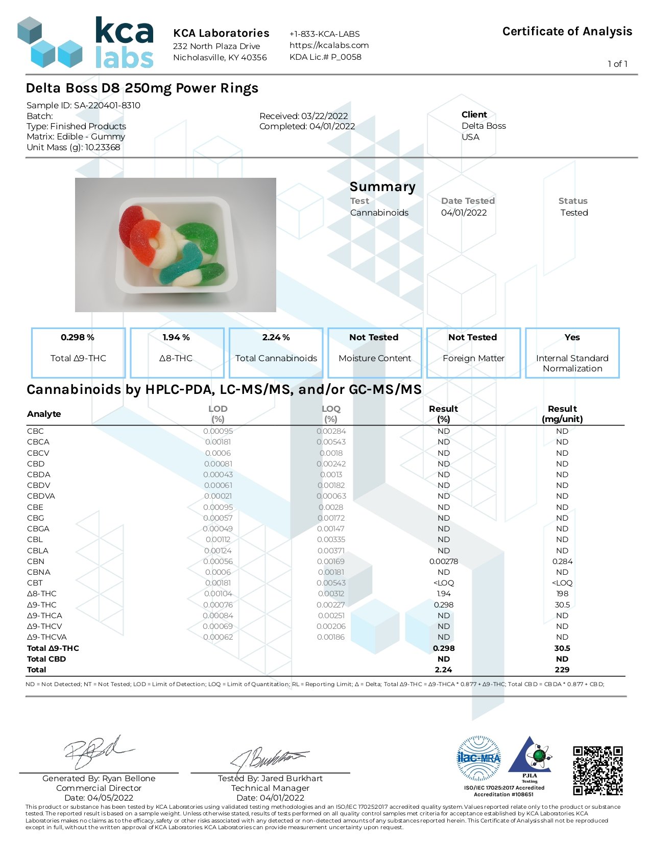 COAs – Delta Boss D8 Gummies – Power Rings