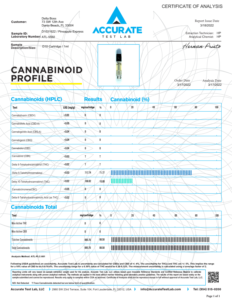 COAs – Delta Boss D10 Vape Tank – Pineapple Express