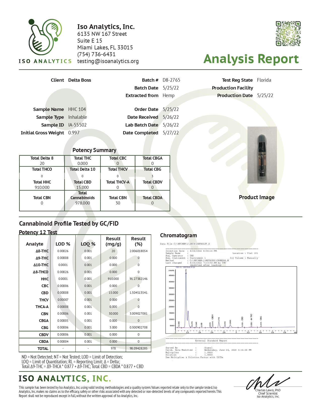 COAs – Delta Boss HHC Vape Tank – Zkittlez